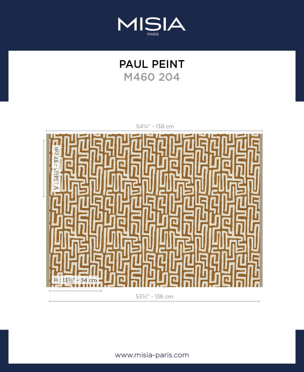 • Horizontal repeat 34 cm / 13 Inches
