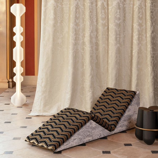 It is off the sparkling coast of Capri that MISIA weaves its new collection of gold, pewter, and silver. Between steep cliffs and luxurious cliffside villas, the island reveals its changing landscapes, where light unfolds in precious shimmers, reflections transposed onto the fabrics of the Caprissima collection. Curly textures with sensual volumes, velvets sculpted by laser fire, veils with precious geometry, handcrafted embroidery with distant echoes... Sometimes raw and textured, like the rocks of Monte Solaro, sometimes shimmering and glossy, like the mainsails of the Marinas, the fabrics play on contrasts of shine and matte to compose a luxurious score, in a canvas combining artisanal virtuosity and the greatest textile innovation. The color palette also reflects the contrasts of Capri: bronze, copper, burnt orange, and pewter combine with the cool shades of silver, aqua, frost, and eternal blue, joined by deep greens.