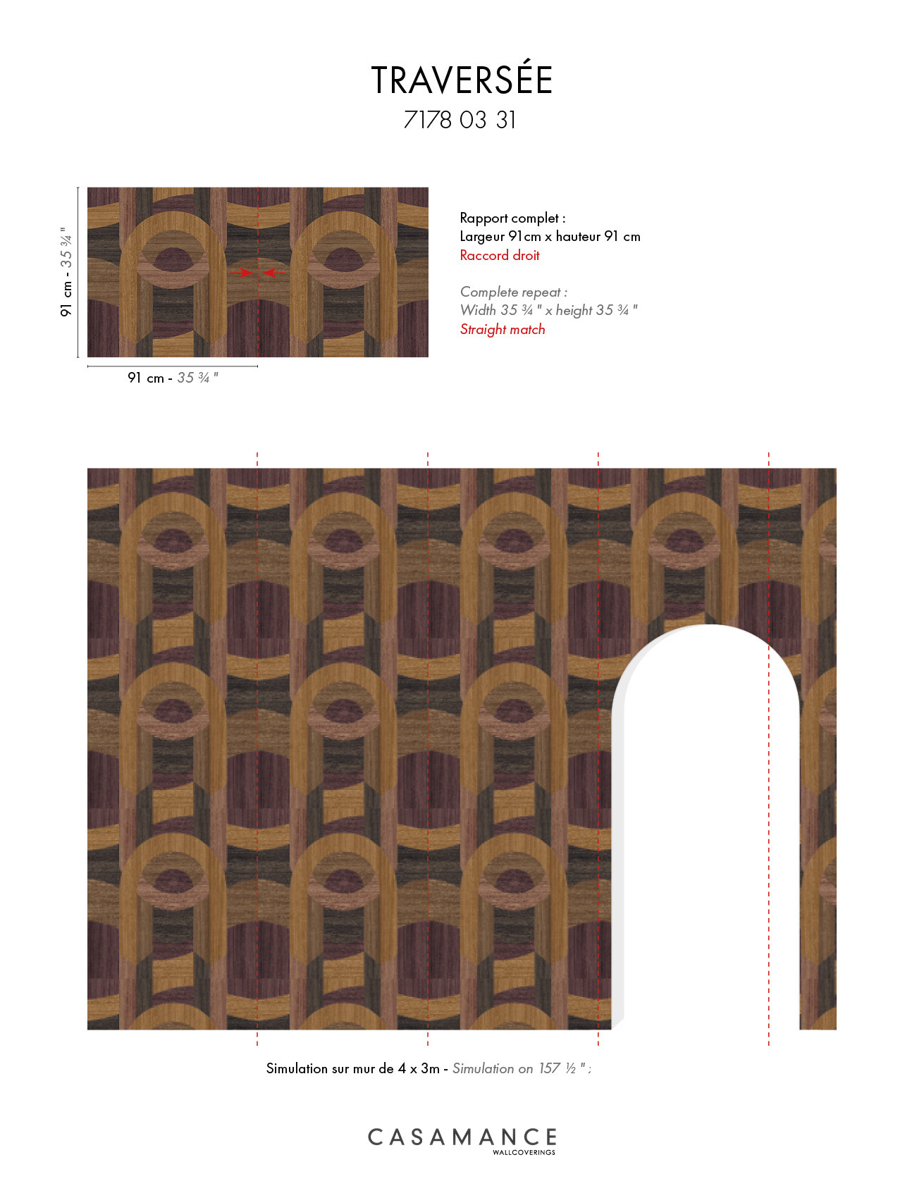 « Traversée » s’inspire du célèbre Ile-de-France, fleuron de la Compagnie Générale Transatlantique sur la ligne Le Havre-New York. L’architecture art déco du paquebot marquera le monde par-delà les mers et les frontières. Il influence la géométrie de « Traversée », dans le travail méticuleux de la marqueterie de bois sur une base intissée. Il est proposé en 3 versions, dans des associations contrastées de teintes : chêne, aubergine au carbone et à l’ivoire.